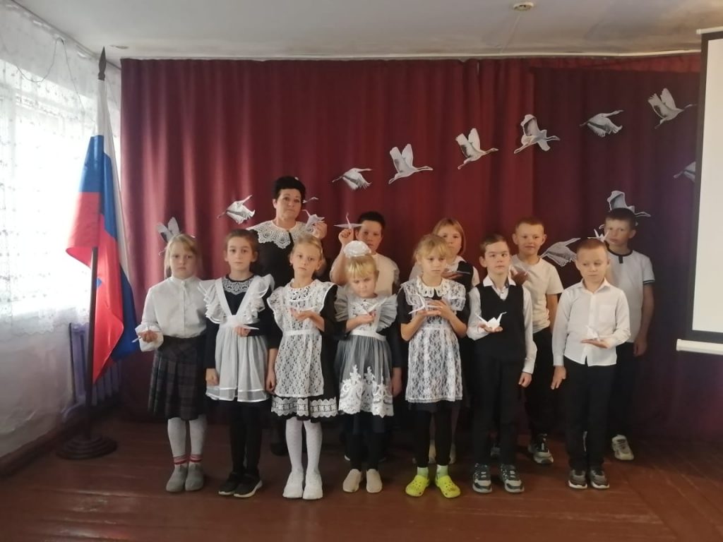 22 октября в сельской библиотеке прошел трогательный Урок Мужества, приуроченный к замечательной дате – Дню Белых Журавлей. Этот день символизирует память о всех героях, павших на полях сражений – героях, которые не вернулись домой. Вместе с Бокиной С.Ю. вспомнили историю появления этой памятной даты. Ребята познакомились с трагической историей японской девочки Садако Сасаки, которая погибла от последствий ядерной бомбардировки в Хиросиме и не успела доделать тысячу журавликов. Светлана Юрьевна прочитала пронзительные стихи, ставшие знаменитой песней, рассказала, почему именно белый журавль стал символом вечной памяти и надежды. Ученики прослушали песню на слова Гамзатова «Журавли» в исполнении Марка Бернеса.